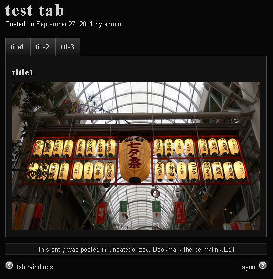 投稿日 2012年6月15日 2:06 PM by tenman Entry : tabbox back to page コメントを残す コメントをキャンセルコメントを投稿するにはログインしてください。